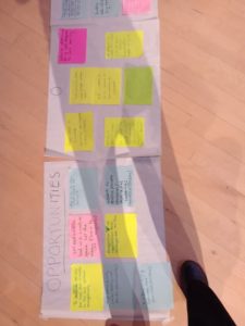 Following the small group conversations, each group brought their notes and placed them in four sections laid out on the floor in the Universal Hall.